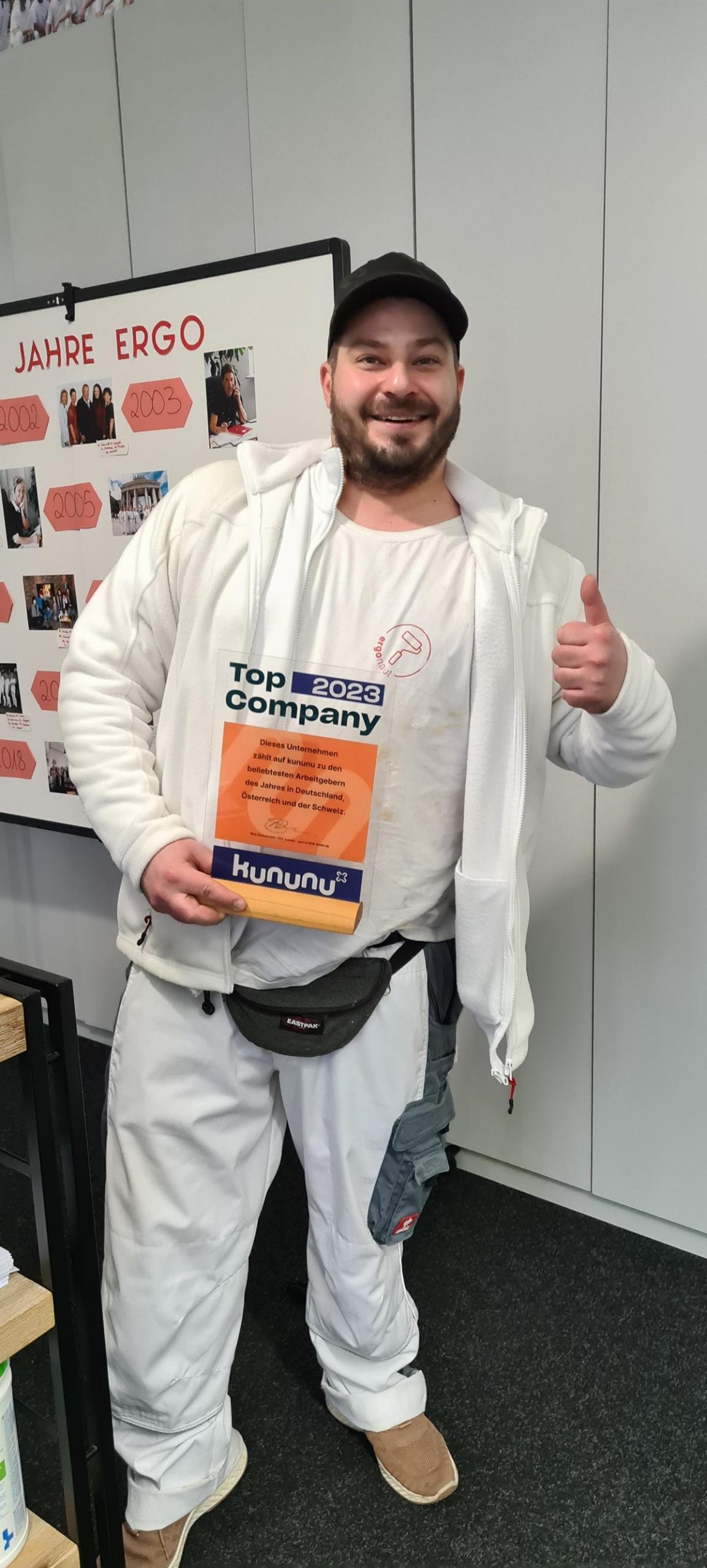 Wir feiern regelmäßig langjährige Jubiläen unserer Maler:innen, erhalten Dankeskarten, wie schön es ist bei uns zu arbeiten und so viele gehen glücklich in Rente. Ja zum Teil finden sie es schade, wenn sie aufgrund eines Umzugs oder Rente nicht mehr bei uns arbeiten können. Und noch was: Natürlich sind einige auch schon zu den „festen Firmen“ gewechselt, zu „richtigen“ Malereibetrieben & Co – doch viele sind wieder zurückgekommen. Kein Thema! Bei uns hat immer jeder motivierte, anständige und ehrliche Malergeselle:in eine offene Tür und ein offenes Ohr. Denn wir verurteilen nicht – sondern geben faire Chancen und herausragende Arbeitsmöglichkeiten.